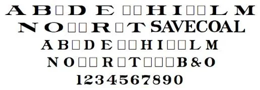 Only includes letters for “BALTIMORE & OHIO,” as this lettering was used only on locomotives and tenders.